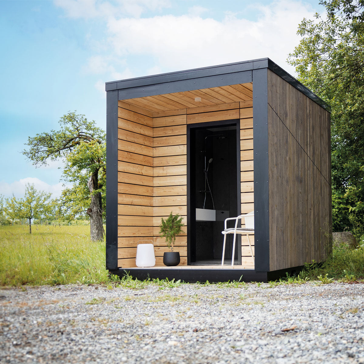 Standfest wie eine Berghütte. Hält auch genauso lang. Gebaut in bewährter Holzständerbauweise mit Holzfaserdämmung, trotzt die kleine Hütte Wind und Wetter. Gefertigt aus langlebigen Lärchenholz. Schon gewusst? Die Lärche ist das härteste und schwerste einheimische Holz und gleichzeitig extrem witterungsbeständig. Genau das Richtige, um ein ganzes Leben draußen in der Natur zu stehen.